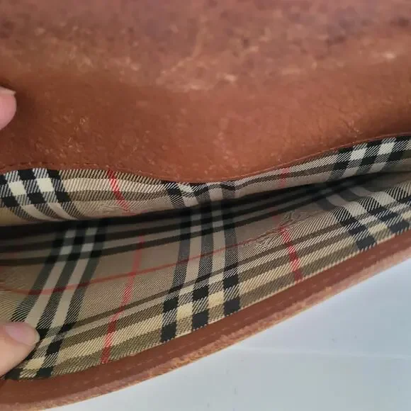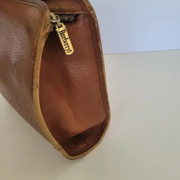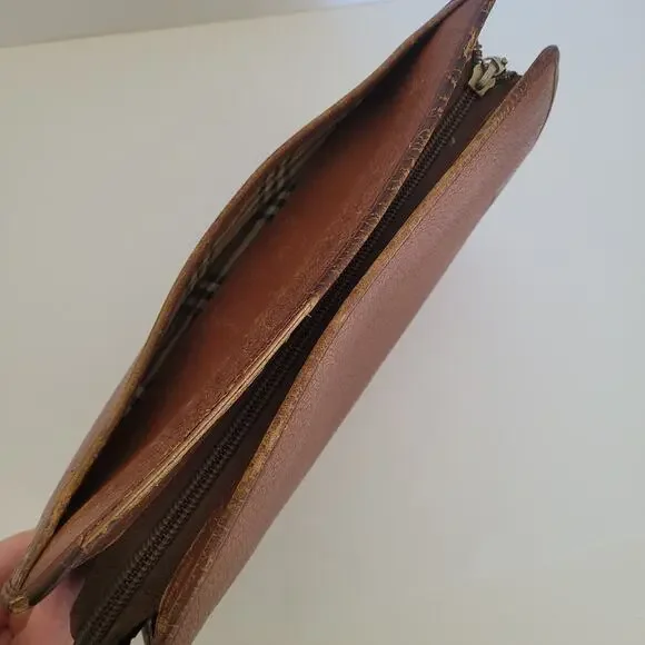 Burberry Vintage Leather Clutch Unisex HandbagAuthenticmeasures width 10,5" height 7" depth up 1,5"1 slip 1 zip compartments inside, front pocket.Gold hardwareCondition is pre-owned,exterior heavy wear on leather mostly on edges , interior minior wear good, overall fair/good condition.Please check out my other listings bundle for discount. Thank you!