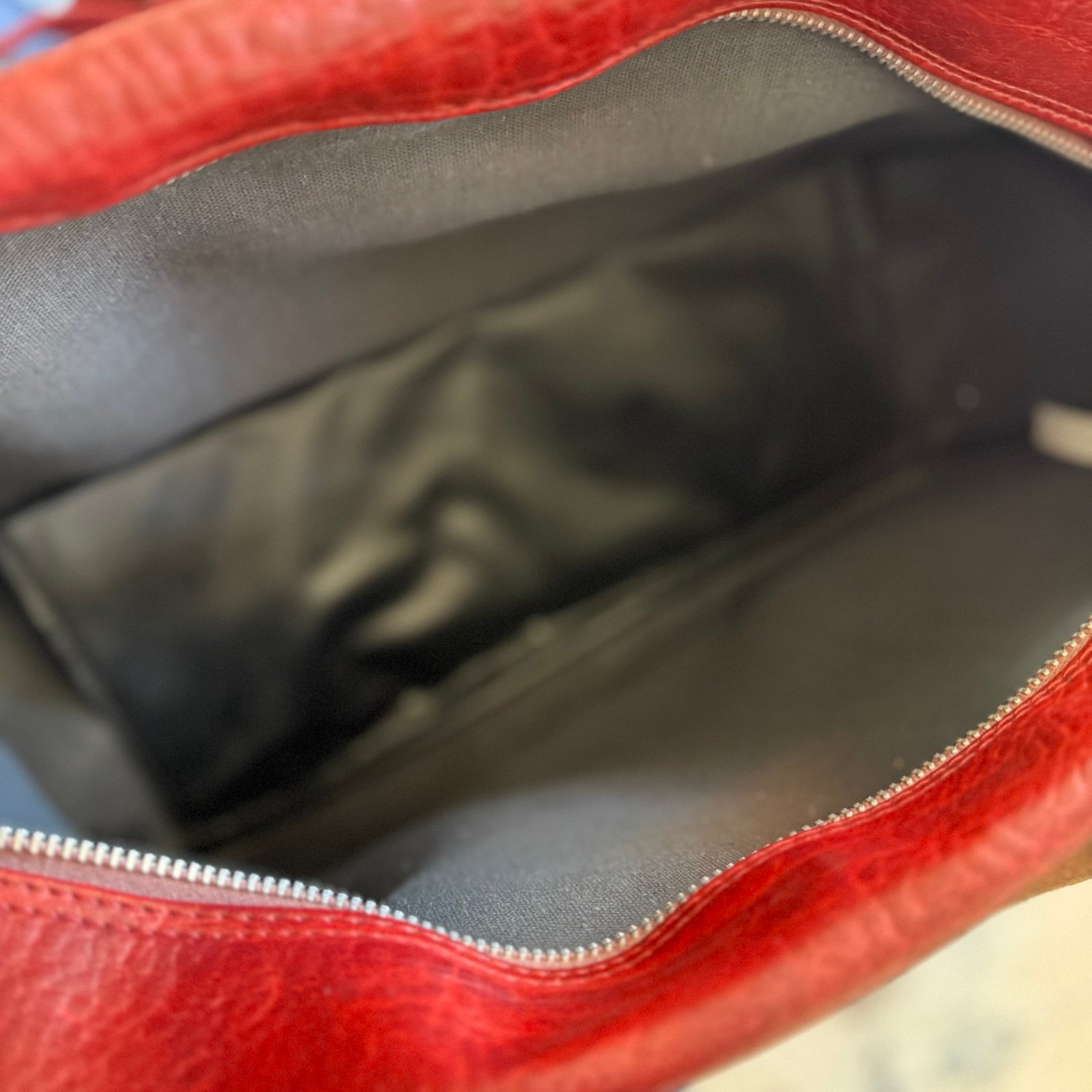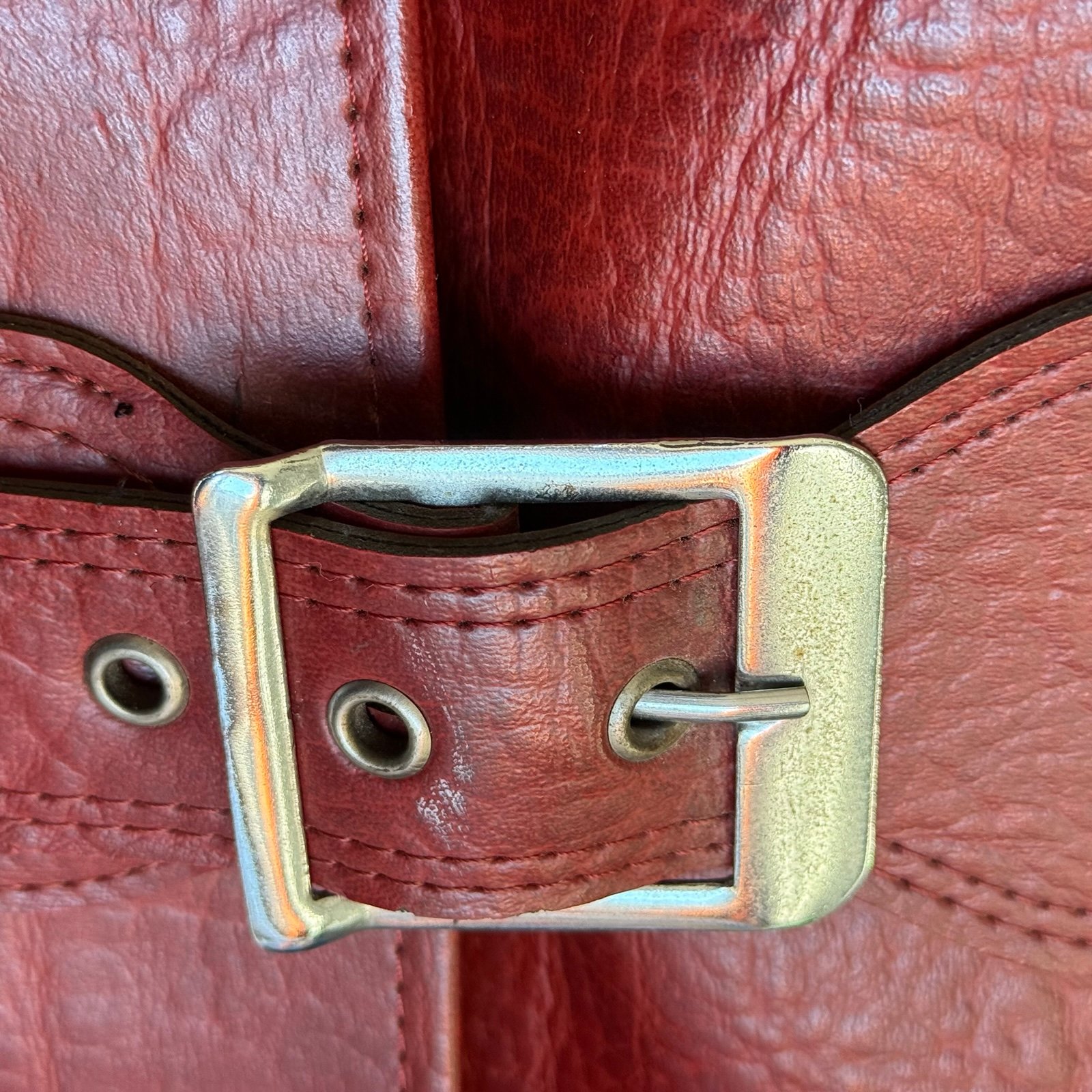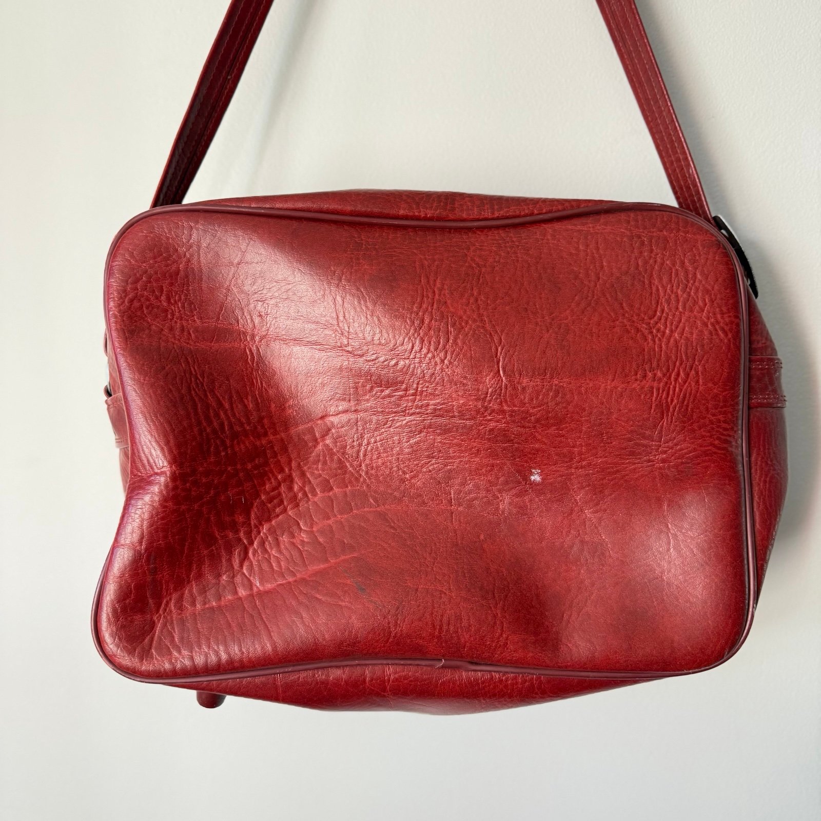Elevate your style with this classic dark red leather messenger bag. 70s vintage. Chunky silver buckle detail. Made in Korea. Perfect for daily use, it combines functionality with a sleek design. Preowned. Moderate signs of wear: white marks to leather, wear to buckles. Good condition.