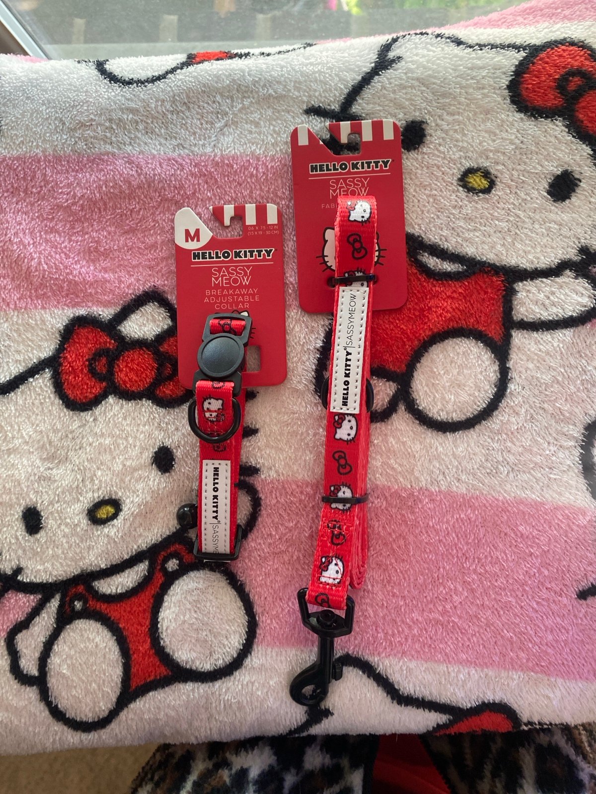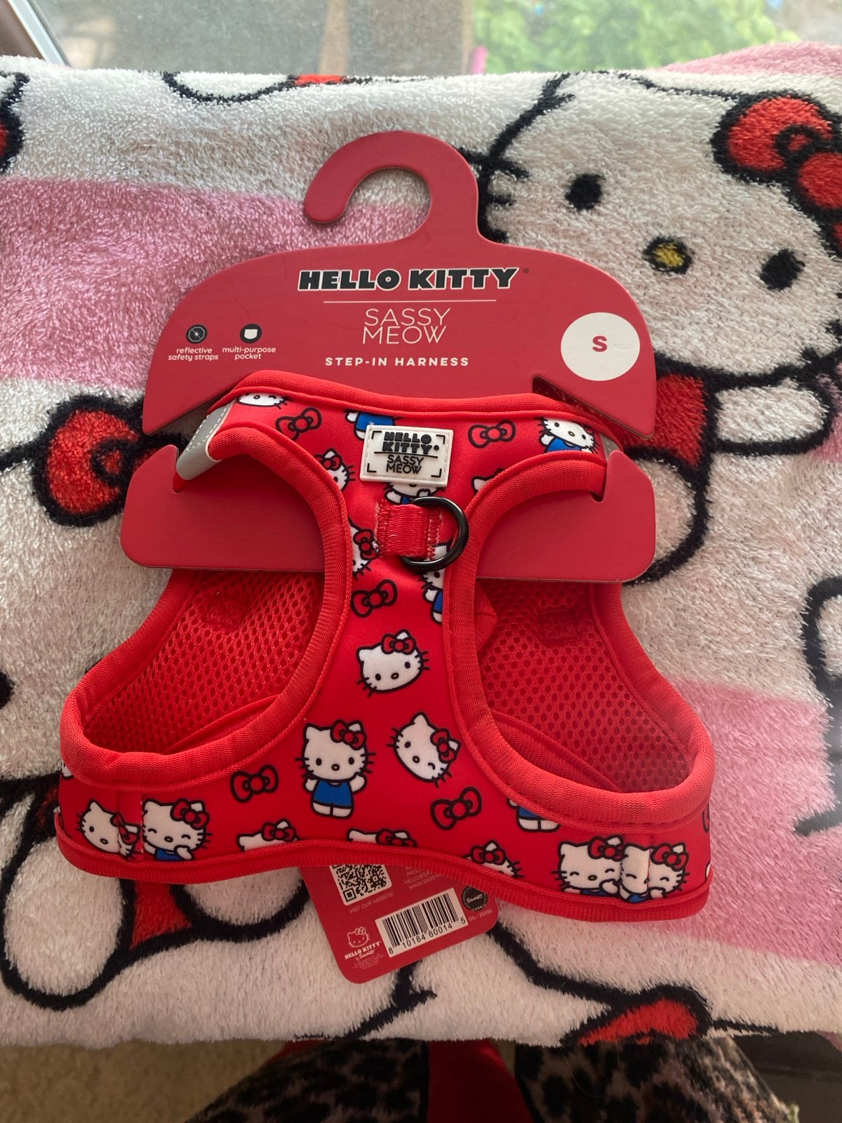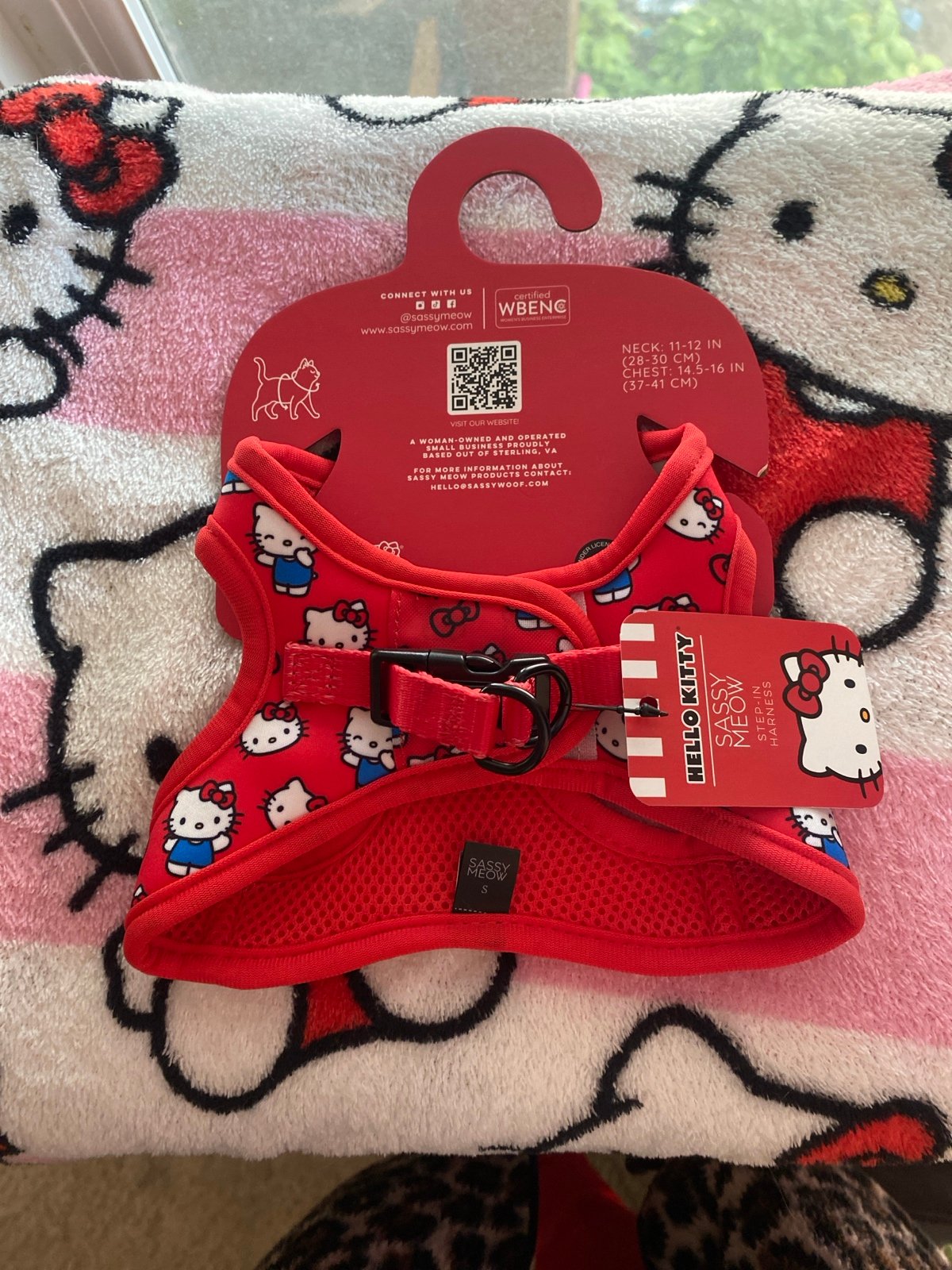 NWT stunning classic Hello Kitty red Sassy Meow harness, leash and collar bundle. Perfect shade for your companion to look stylish for the Fall and Winter time. Harness is a size small it fits your average sized kitties with the collar a size medium which goes with the small sized harness. I took pictures of the size measurements if you like I can update it with the sassy meow size guide page on the listing.